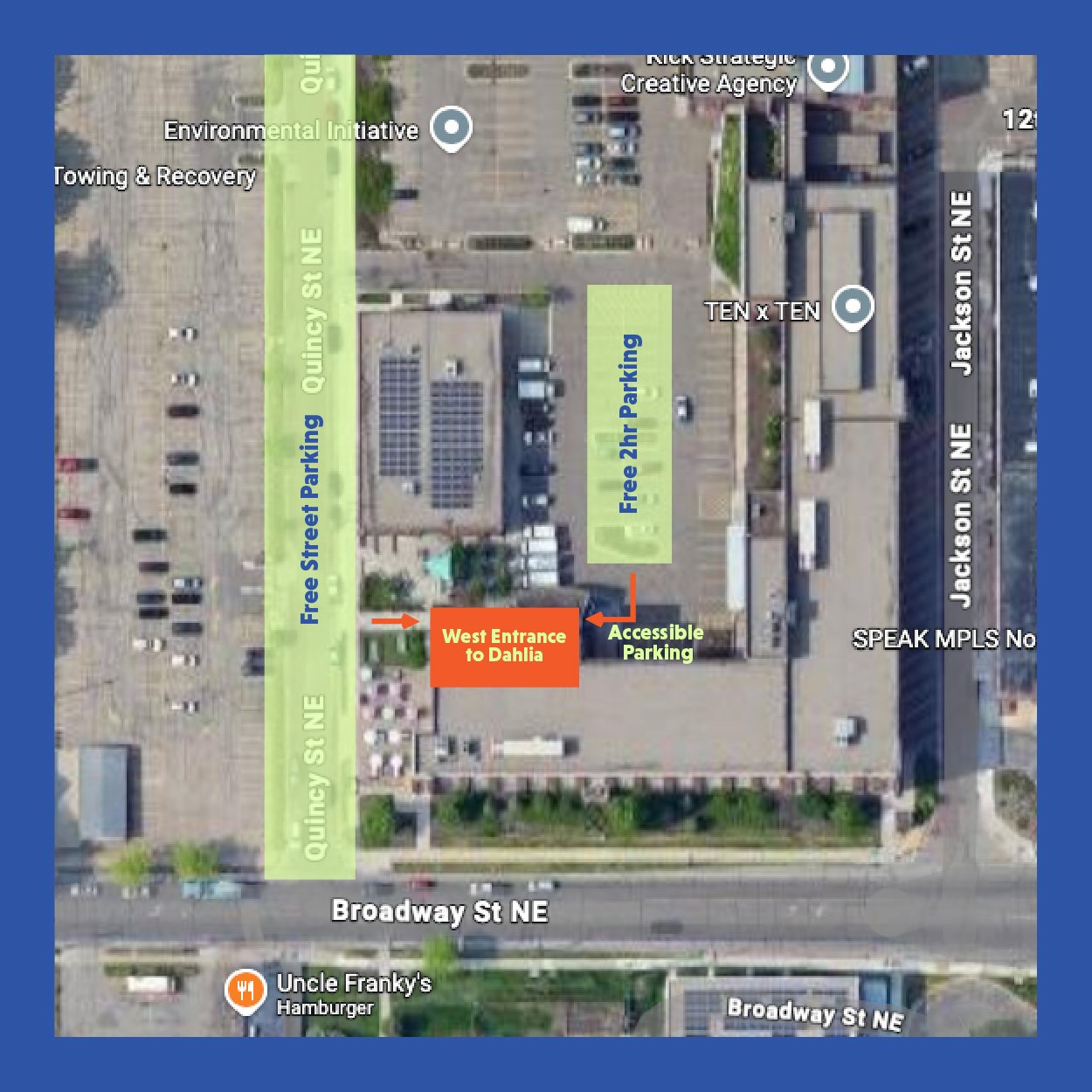 Free parking is available on Quincy Street or in the center spaces of the 2-hour lot located off of Quincy. Accessible parking is located near the West Entrance in the 2-hour lot.